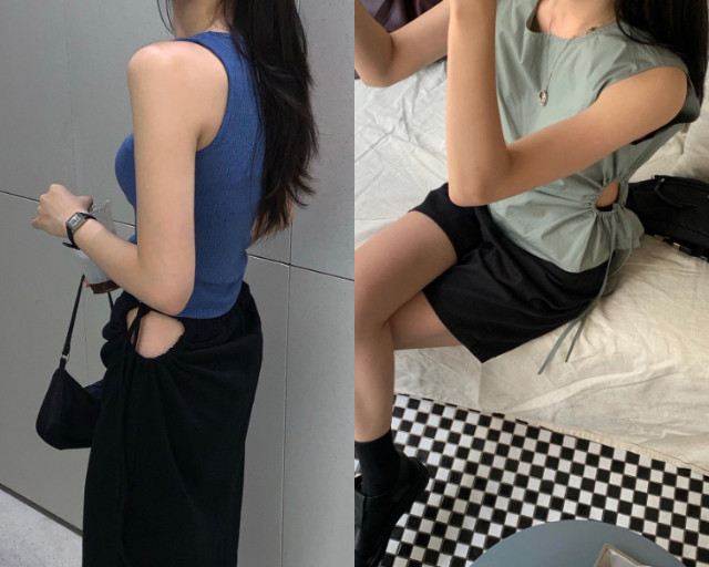 开洞的设计在近期的日韩系穿搭中越来越常见,许多搭党或许会觉得有点难以驾驭,但其实选对颜色以及款式,开洞的服饰也可以完美演绎。像是是基本款的黑色裙装,有了腰间的开洞就为整体造型增添个性及小性感;或是选择带雾感的莫兰迪色系,质感的色调不会让整体落于俗套,前卫的开洞设计也更带出整体设计感。